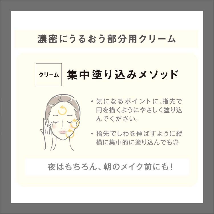 ●べたつかず、のびのある濃厚なテクスチャーで、目もと口もとなど気になる部分を集中ケア。