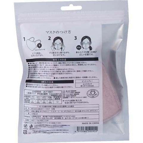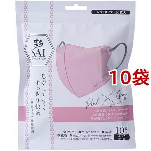 彩 SAI 立体マスク ピンク*グレー ふつうサイズ (10枚入*10袋セット)