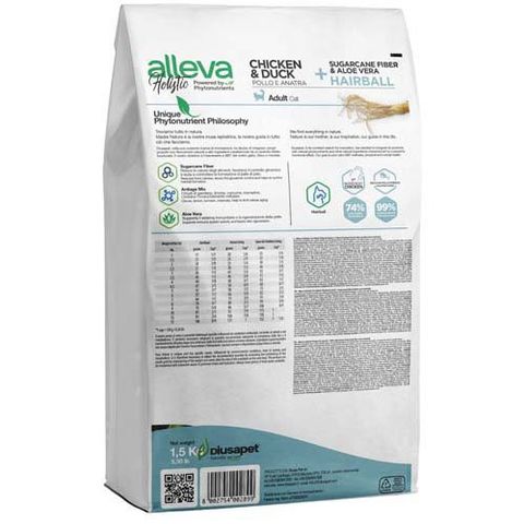 アレヴァホリスティック猫用ヘアボールチキン&ダック+サトウキビ繊維&アロエベラ (1.5kg*4袋セット)