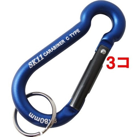 SK11 アルミカラビナ C 軽量・ズレにくい SAC-880C ブルー (1コ入*3コセット)