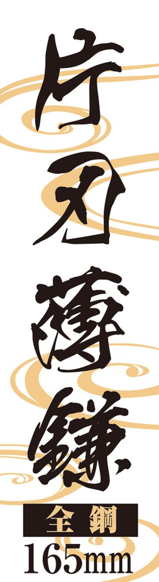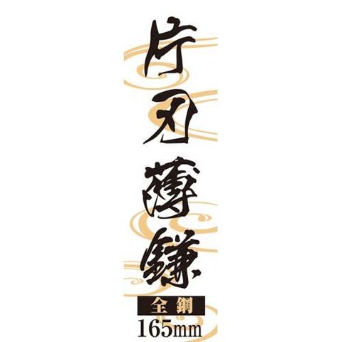 | 刃部:全鋼。片刃。薄刃。刃長:約165mm。(材質)刃部:S50C。柄:椿。 |