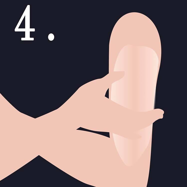 (2)二の腕を石けんの広い面で、円を描くように優しくなでます。