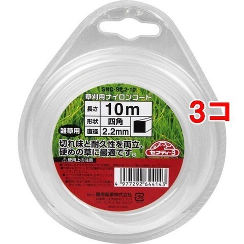 セフティ-3 草刈り用ナイロンコード 四角2.2*10m SNC-S2.2-10 (1コ入*3コセット)