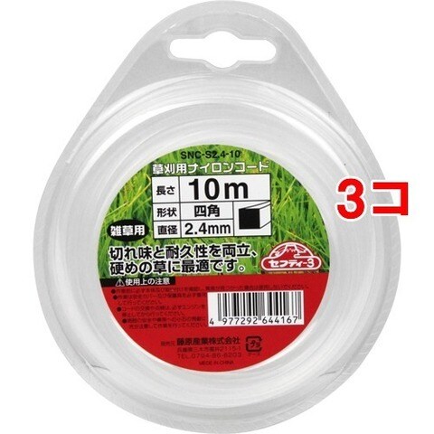 セフティ-3 草刈り用ナイロンコード 四角2.4*10m SNC-S2.4-10 (1コ入*3コセット)