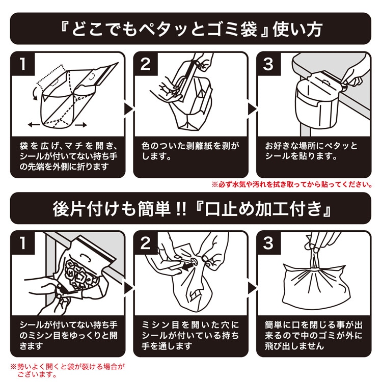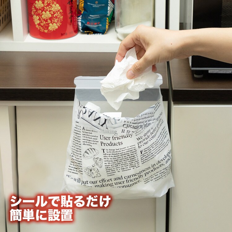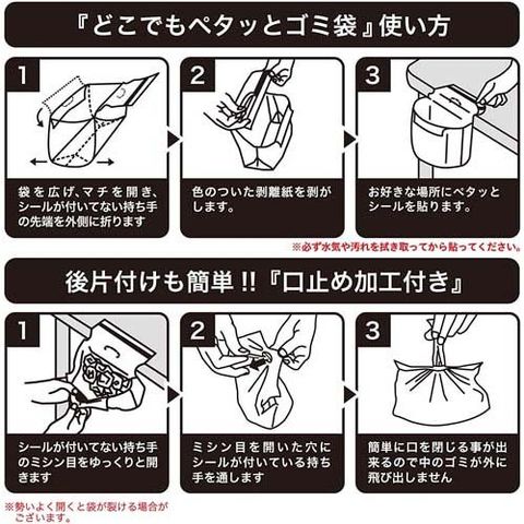 ●お好きな場所にペタッと貼るだけでゴミ箱代わりに使える便利なゴミ袋。