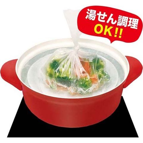 | 本体材質:ポリエチレン 本体サイズ:ヨコ250*タテ390mm、厚さ0.015mm 耐熱温度:100度 耐冷温度:マイナス30度 |