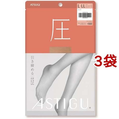 アスティーグ 圧 引き締める 着圧ストッキング L-LL ヌーディベージュ (1足入*3袋セット)