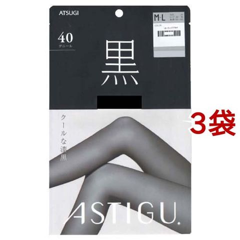 アスティーグ 黒 クールな漆黒 40デニール タイツ M-L ディープブラック (1足入*3袋セット)