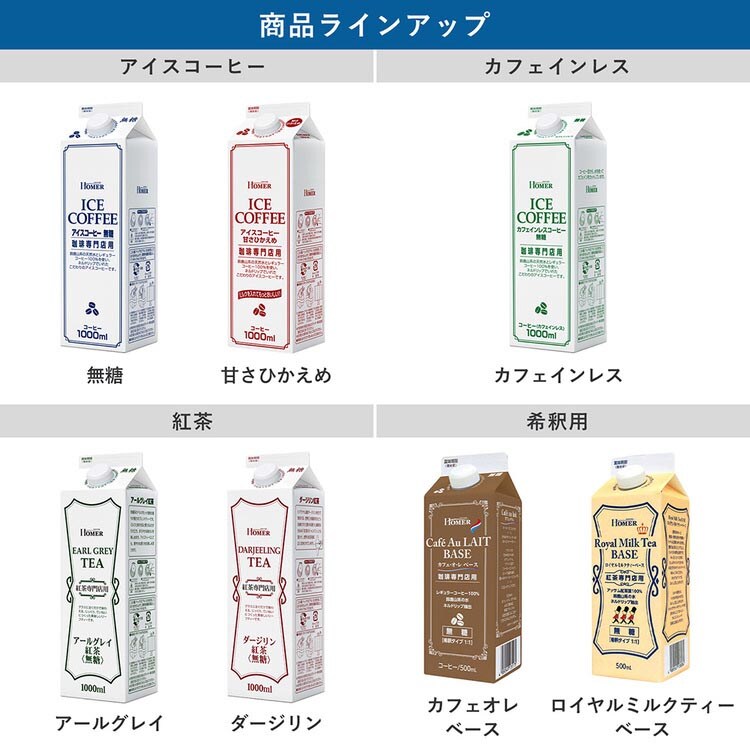 【HOMER カフェオレベース 無糖 珈琲専門店用の商品詳細】
