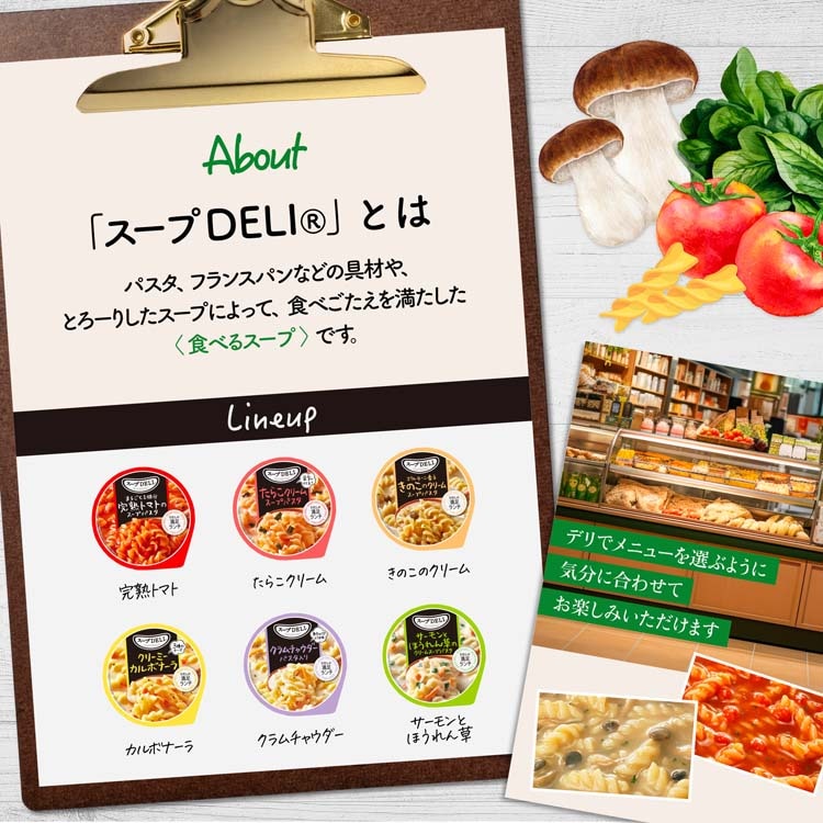 ●豊富なラインナップを取りそろえた、食べ応えのあるスープパスタシリーズです。