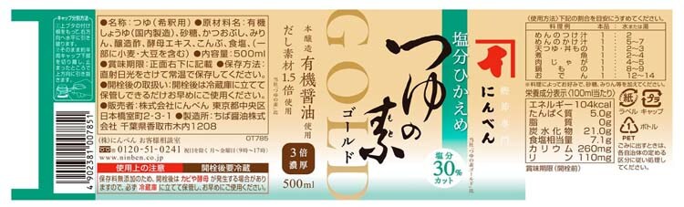 【にんべん 塩分控えめ つゆの素 ゴールドの商品詳細】