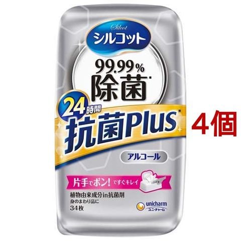 シルコット 99.99%除菌 ウェットティッシュ 抗菌Plus 本体 (34枚入*4個セット)