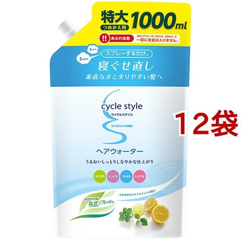 サイクルスタイル ヘアウォーター シトラスミントの香り つめかえ用 (1000ml*12袋セット)