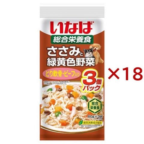 いなば ささみと緑黄色野菜 とり軟骨・ビーフ入り (3袋入×18セット(1袋60g))