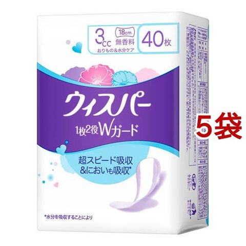 ウィスパー 1枚2役Wガード 3cc 無香料 (40枚入*5袋セット)