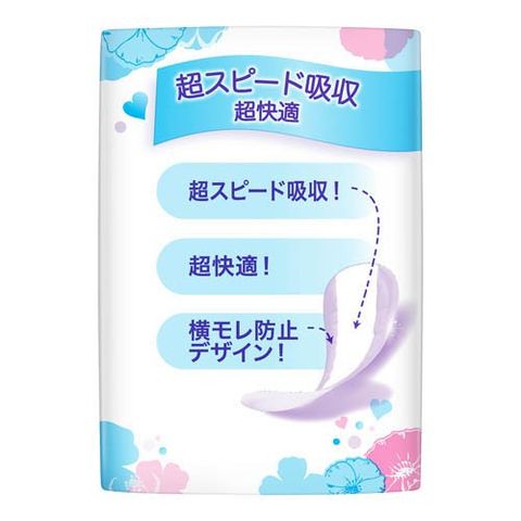 ●超吸収。さらに、超ふわふわトップシートで、超快適。●「超スピード吸収」で おりものも、水分も。においも吸収。*水分を吸収することによる。●横モレ防止デザインで横モレを防止。●歩きやすい、動きやすい。ゴワゴワしない。(女性用、尿漏れパッド、にょう漏れパッド、尿モレパッド、尿取りパッド、尿とりパッド、にょうとりパッド、吸水パッド、吸水ナプキン)