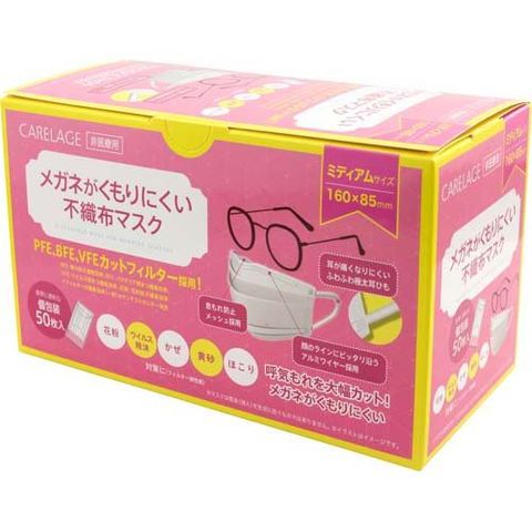 ケアレージュ メガネがくもりにくい不織布マスク ミディアム 個包装 (50枚入*5箱セット)