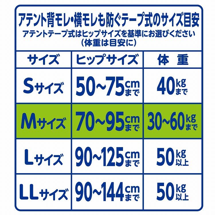 【アテント 消臭効果付テープ式 背モレ・横モレも防ぐ M 大容量の商品詳細】