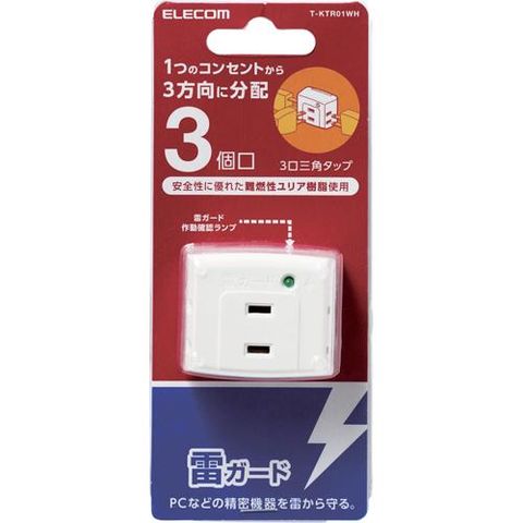 【エレコム 延長コード 電源タップ 2P 3個口 トリプルタップ 雷ガード機能 白 T-KTR01WHの商品詳細】
