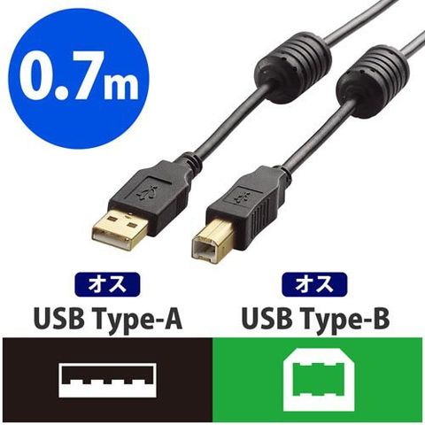 【エレコム USBケーブル USB2.0 B-A フェライトコア ノイズ吸収 ブラック 0.7mの商品詳細】