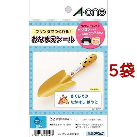 エーワン おなまえシール 水に強い インクジェット 染料8面 20×60mm 29347 (4シート入×5セット)
