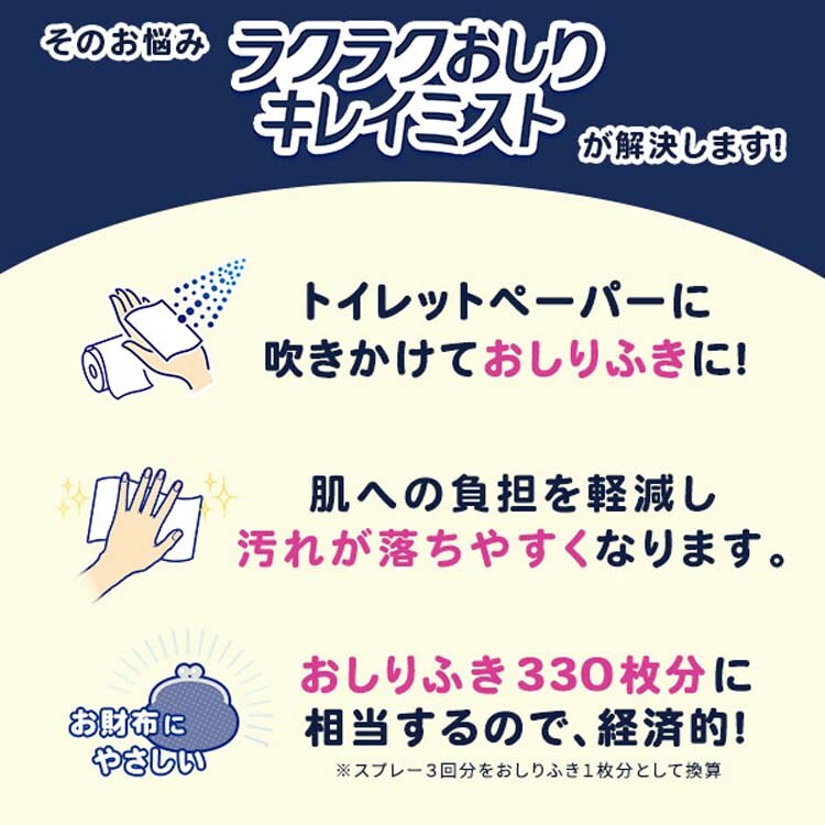 ●これ1本でおしりふき約330枚分(スプレー3回をおしりふき1枚分として換算)