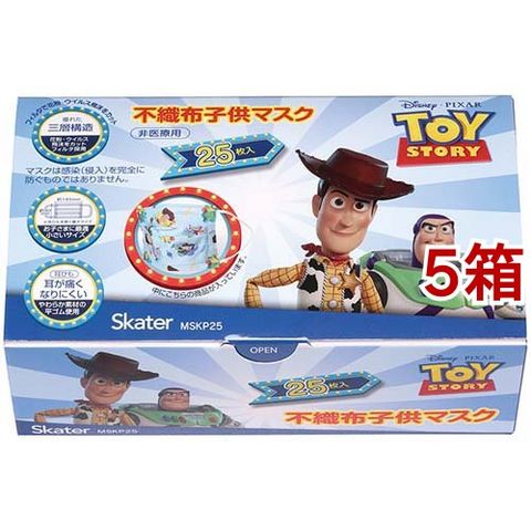 子供用 不織布 プリーツマスク 箱入り トイストーリー (25枚入*5箱セット)