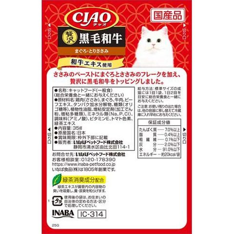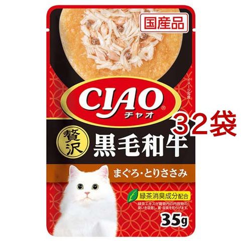 CIAOパウチ 贅沢 黒毛和牛 まぐろ・とりささみ (35g*32袋セット)