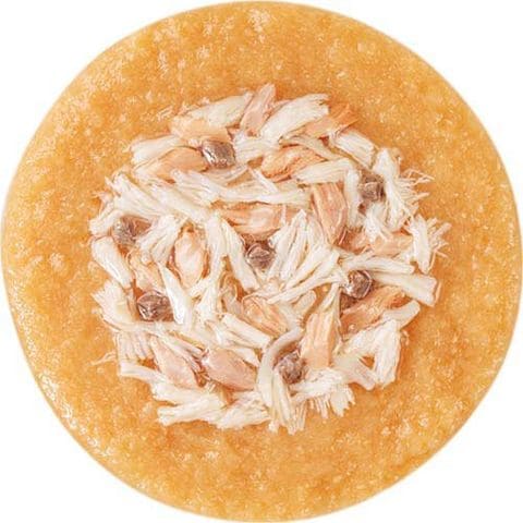 | 鶏肉(ささみ)、まぐろ、牛肉、ビーフエキス、タンパク加水分解物、糖類(オリゴ糖等)、植物性油脂、増粘安定剤(加工でん粉、増粘多糖類)、ミネラル類(Na、P、Cl)、調味料(アミノ酸)、ビタミンE、トマト色素、緑茶エキス |