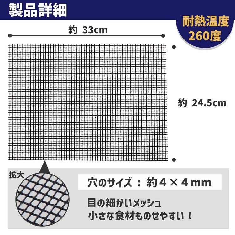 【お手入れ簡単!焼き網シート 33*24.5cmの商品詳細】