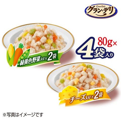 グラン・デリ 100%国産鶏肉 パウチ ほぐし 成犬用 緑黄色野菜&チーズ (4パック入×9セット(1パック80g))