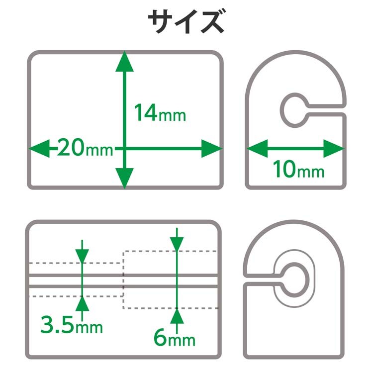 | サイズ:設置時外寸:約W90mm*D30mm*H19mm、ホルダー外寸:約W10mm*D20mm*H14mm、土台外寸:約W90mm*D30mm*H19mm 材質:本体:シリコン/磁石、土台:シリコン/磁石 カラー:ブラック 入り数:ホルダー:5個、土台:1個 その他:対応ケーブル径:φ4.5mm 重量:約72g |