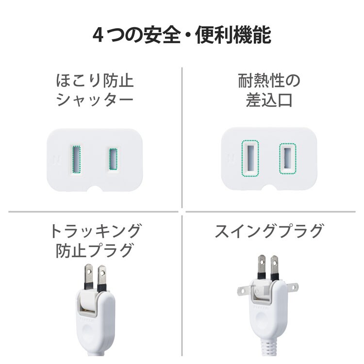 【エレコム 延長コード 電源タップ コンセント 1m 1個口 スイングプラグ ホワイトの商品詳細】