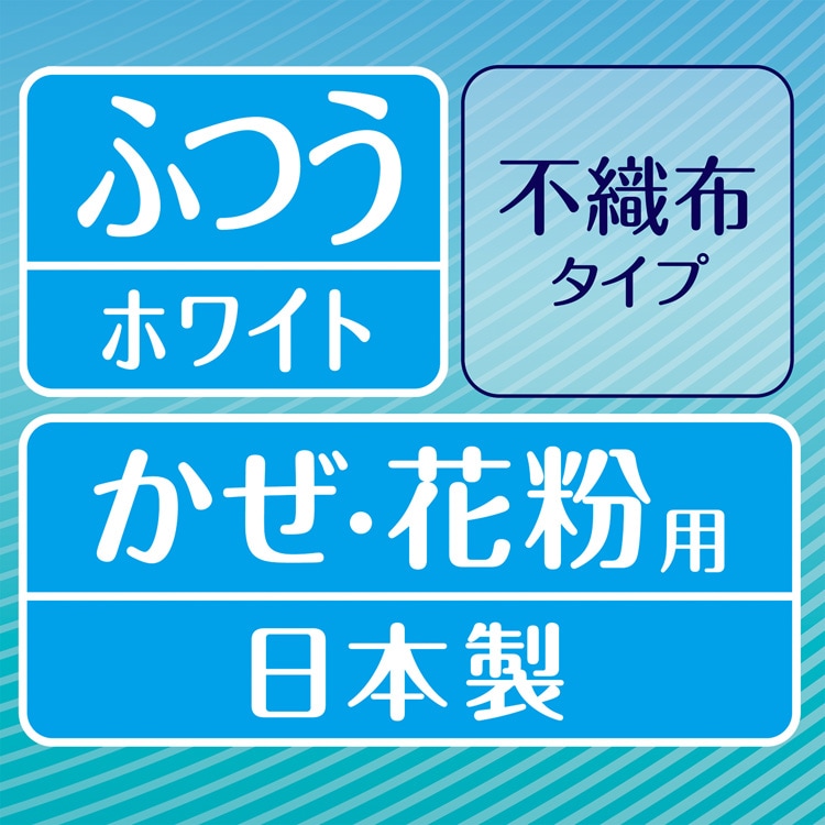 ・素材:本体・フィルタ部(ポリオレフィン)、耳かけ部(ポリオレフィン・ポリウレタン)、ノーズフィット部(ポリオレフィン)