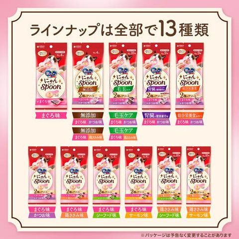 【銀のスプーン おやつ にゃんSpoon 無添加2種のアソート まぐろ&鶏ささみ味の商品詳細】