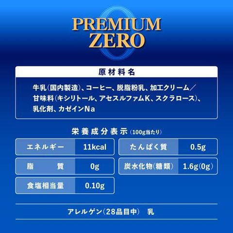 | 牛乳(国内製造)、コーヒー、脱脂粉乳、加工クリーム/甘味料(キシリトール、アセスルファムK、スクラロース)、乳化剤、カゼインNa |