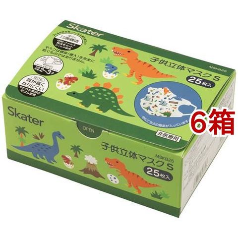 ベビー 子供用 不織布 立体マスク 箱入り 2~3才用 ディノサウルス恐竜柄 (25枚入*6箱セット)