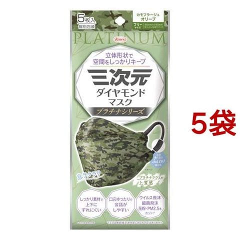 三次元ダイヤモンドマスク プラチナ フリーサイズ カモフラージュオリーブ (5枚入*5袋セット)
