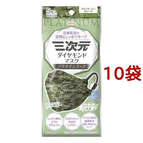 三次元ダイヤモンドマスク プラチナ フリーサイズ カモフラージュオリーブ (5枚入*10袋セット)