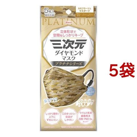 三次元ダイヤモンドマスク プラチナ フリーサイズ カモフラージュマスタード (5枚入*5袋セット)