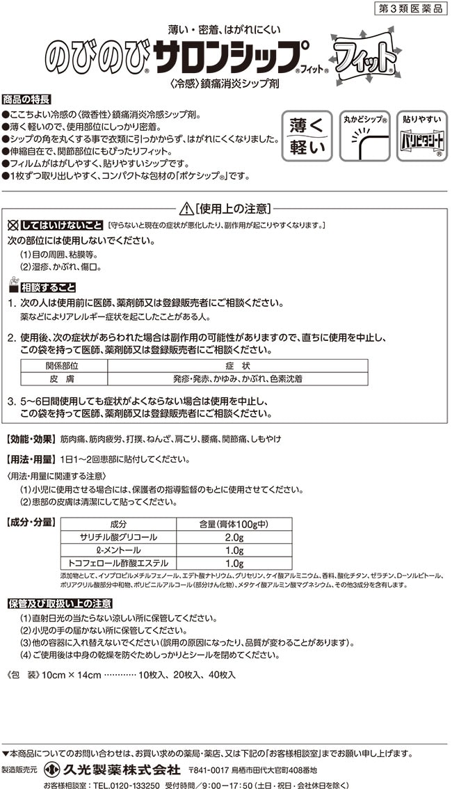 【第3類医薬品】のびのびサロンシップフィット (40枚入*2袋セット(セルフメディケーション税制対象))