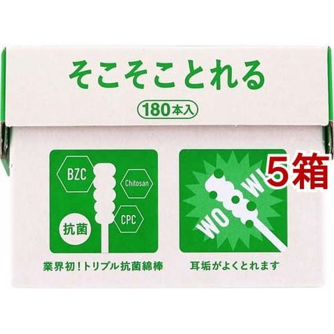 トリプル抗菌綿棒 そこそことれる (180本入*5箱セット)