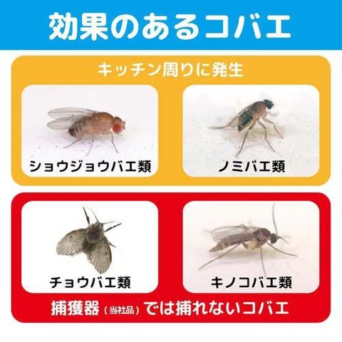 ●捕獲器(メーカー品)ではとれないチョウバエ、キノコバエにも効く。