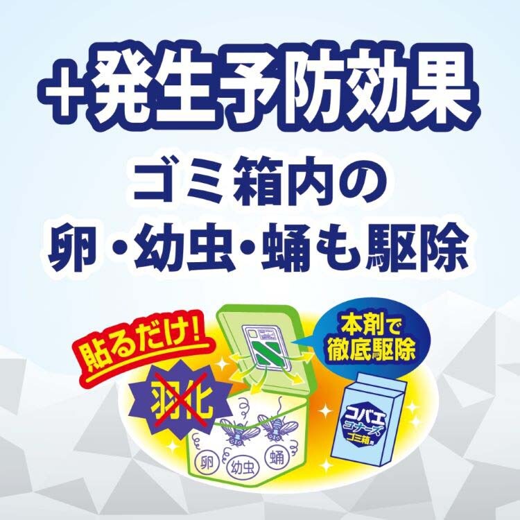 ●殺虫成分プロフルトリン配合。ゴミ箱内のコバエは勿論、ゴミ箱内に潜む卵、幼虫、蛹も駆除できるので、新たなコバエの発生も防ぎます!
