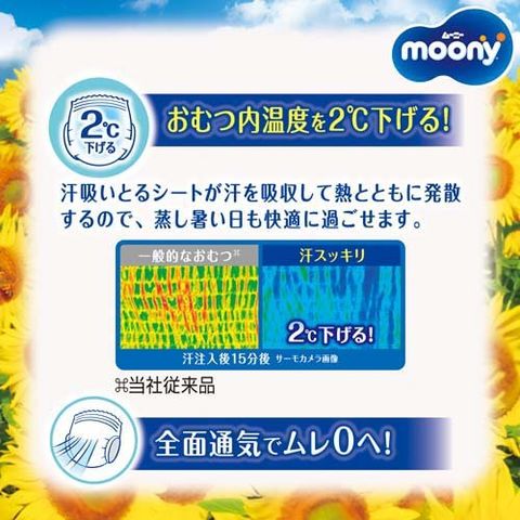 ●また、おむつ内温度を2度下げるので暑い夏も快適です。