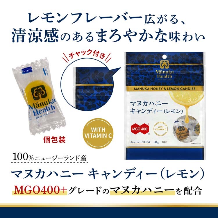 マヌカヘルス マヌカハニー キャンディーレモン 個包装 チャック付 (80g*2袋セット)