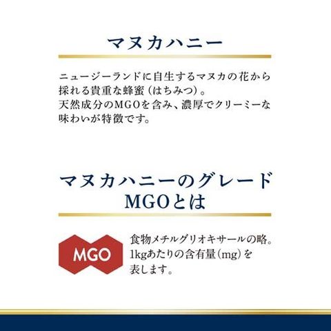 記載されているMGOとはマヌカハニーのグレードを数値で表したものです。