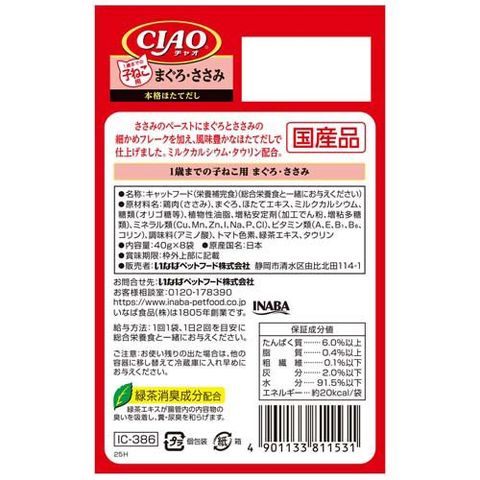 CIAOパウチ 1歳までの子ねこ用 まぐろ・ささみ (40g*8袋入*2箱セット)