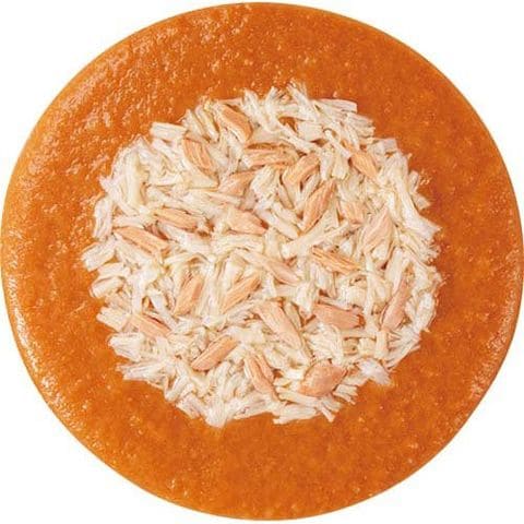 | 鶏肉(ささみ)、まぐろ、ほたてエキス、ミルクカルシウム、糖類(オリゴ糖等)、植物性油脂、増粘安定剤(加工でん粉、増粘多糖類)、ミネラル類(Cu、Mn、Zn、I、Na、P、Cl)、ビタミン類(A、E、B1、B6、コリン)、調味料(アミノ酸)、トマト色素、緑茶エキス、タウリン |