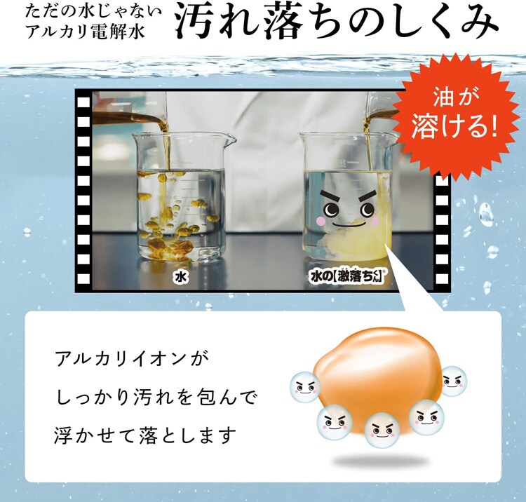 ●水拭きでは取れない汚れをアルカリイオンが包み込んで浮かせて落とします。